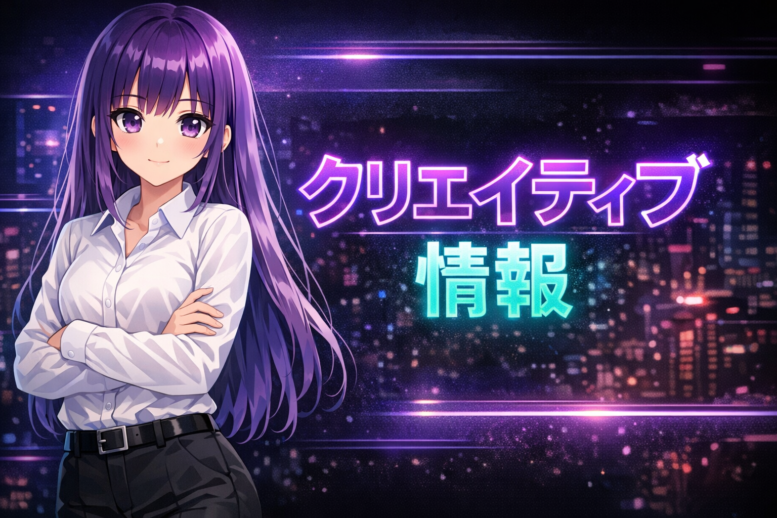 - 髪色と目の色は紫